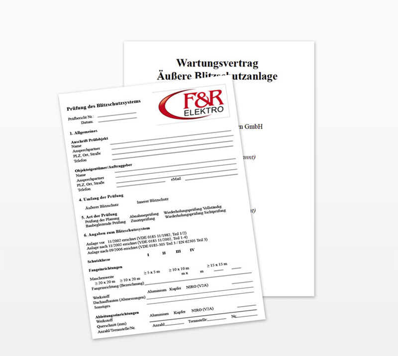 Unsere Prüfungen erstrecken sich auf mechanische Festigkeit, die fachtechnisch korrekte Ausführung und elektrische Messungen. Ein Protokoll fasst die Ergebnisse der Arbeiten zusammen. Mit unserem Wartungsvertrag sind Sie auf der sicheren Seite.